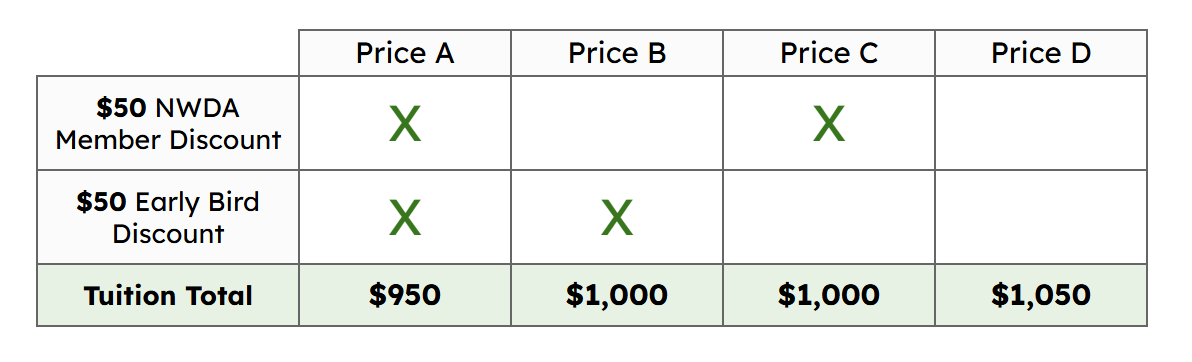 The base price for camp tuition for 2026 is $1050. However, there are many discounts and scholarships available to help lower the cost, so please read the following carefully.